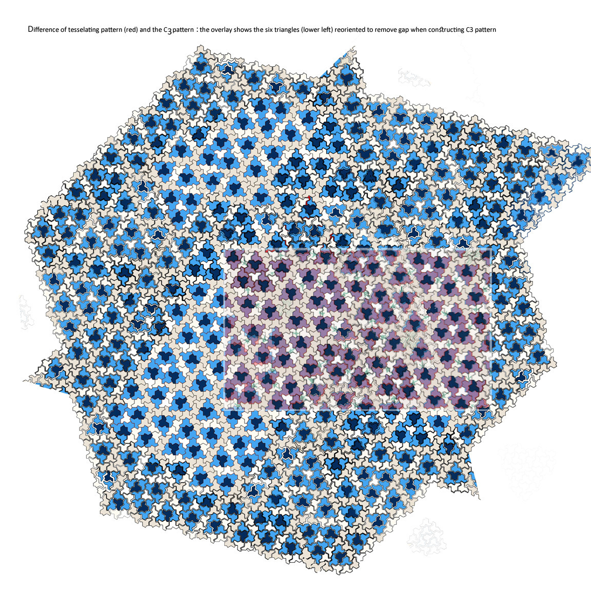 My expansion of the tessellating fragment threw up a gap which I migrated out of the pattern leading to the C3 non tessellating pattern